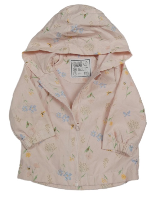 Světlerůžová šusťáková podzimní bunda s kytičkami a včelkami a kapucí F&F