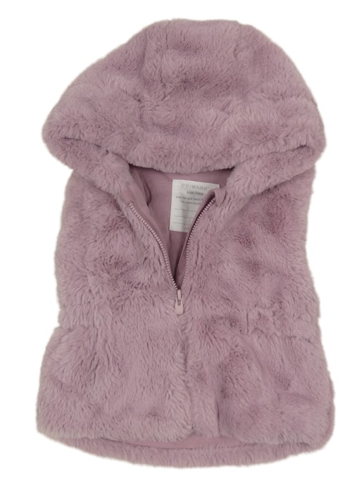 Růžová kožešinová zateplená vesta s kapucí Primark
