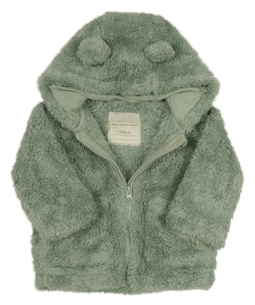 Olivová chlupatá bunda s kapucí s oušky Tu