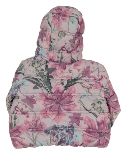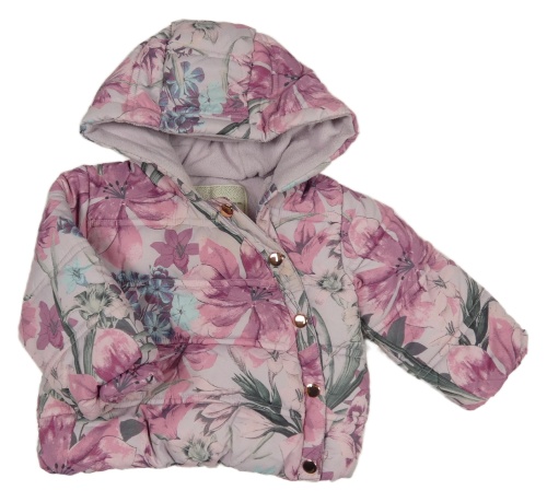 Světlerůžová šusťáková zimní bunda s kytičkami a kapucí Tu