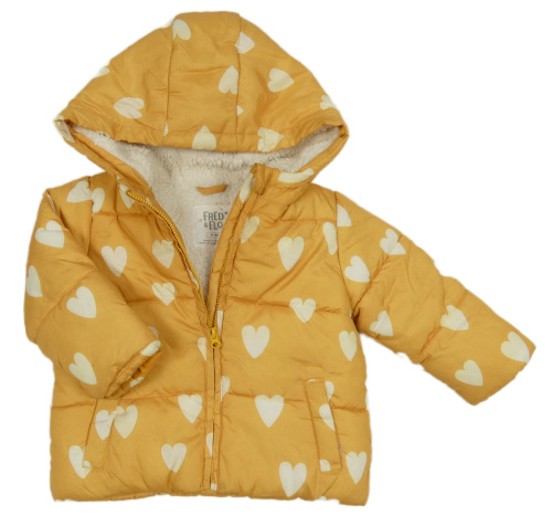 Okrová srdíčkovaná šusťáková zimní bunda s kapucí F&F