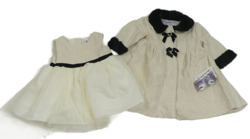 Nové- 2set- smetanový kabát s kožíškem+ šaty