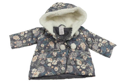 Tmavošedá květovaná šusťáková zimní bunda s kapucí