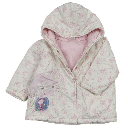 Bílo-růžová květovaná šusťáková zimní bunda s kočkou a kapucí Next