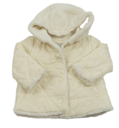 Smetanová šusťáková prošívaná zateplená bunda s chlupatou kapucí Tu