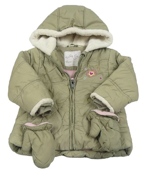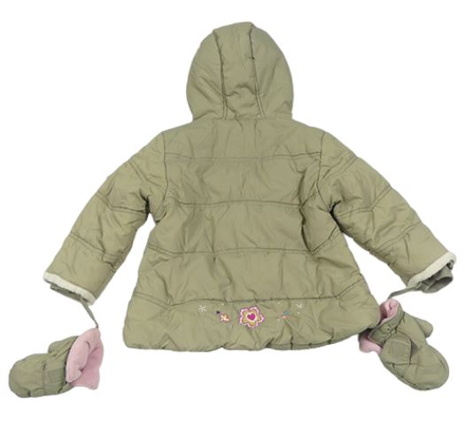 Khaki šusťáková zimní bunda s kytičkami a kapucí + rukavice