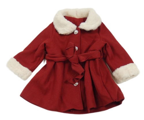 Bordó pletený podšitý kabát s kožešinou a páskem