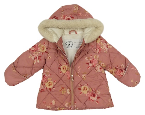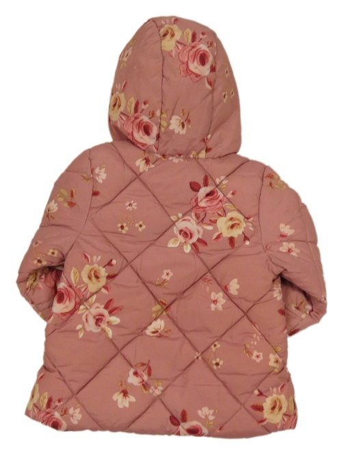 Růžová šusťáková prošívaná zimní bunda s květy a kapucí George