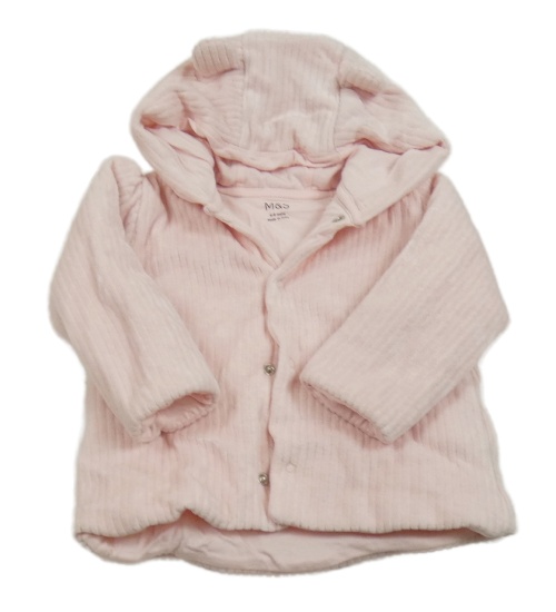 Světlerůžový sametový žebrovaný zateplený kabátek s kapucí M&S
