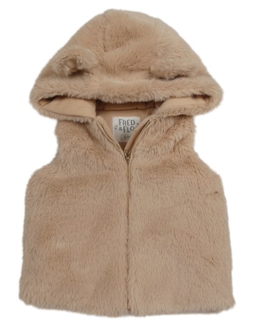 Pudrová kožešinová zateplená vesta s kapucí s oušky F&F