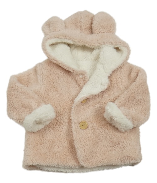 Světlerůžový huňatý zateplený kabátek s kapucí s oušky Matalan