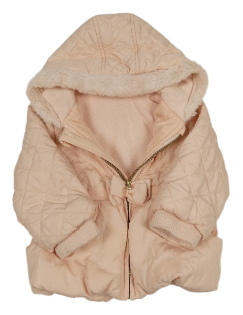 Světlerůžová šusťáková prošívaná zimní bunda s kapucí s kožešinou C&A