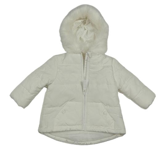 Bílá šusťáková zimní bunda s kapucí s kožešinou