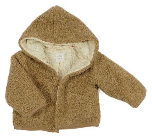 Hnědá huňatá podšitá bunda s kapucí Zara