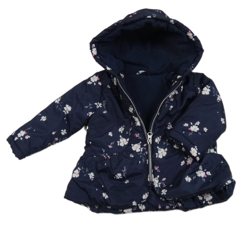 Tmavomodrá květovaná šusťáková zateplená bunda s kapucí St. Bernard