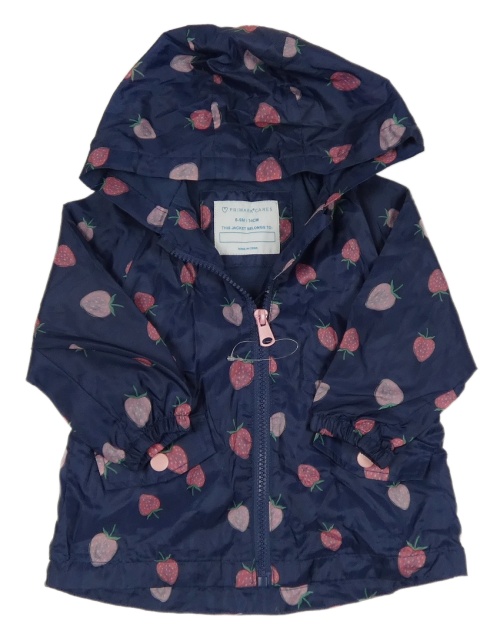 Tmavomodrá šusťáková jarní bunda s jahodami a kapucí Primark