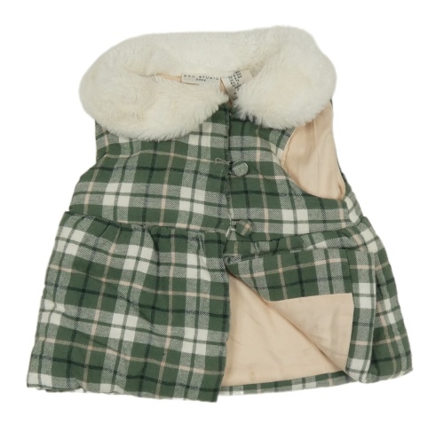 Khaki-bílá kostkovaná flanelová zateplená vesta s kožíškem Max Studio