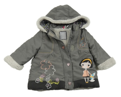 Šedá šusťáková zateplená bunda s holčičkou a kapucí Orchestra