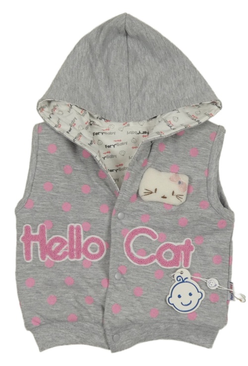 Nové - Šedá melírovaná puntíkatáý tepláková zateplená vesta s kočkou a kapucí