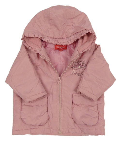 Růžová šusťáková zateplená bunda s květinou a kapucí