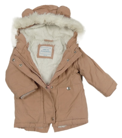 Pudrová šusťáková zimní parka s kapucí s kožešinou a oušky PRIMARK