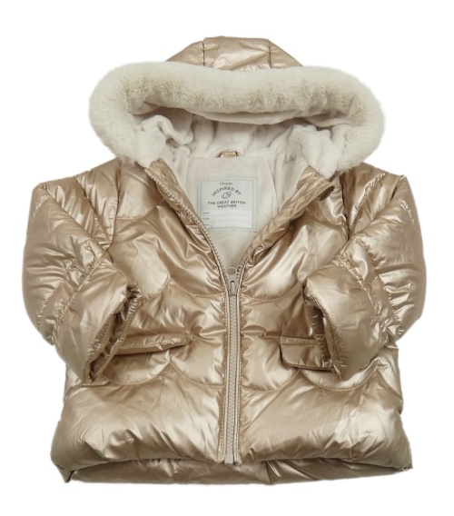 Zlatá prošívaná šusťáková nepromokavá zimní bunda s kapucí s kožešinou George