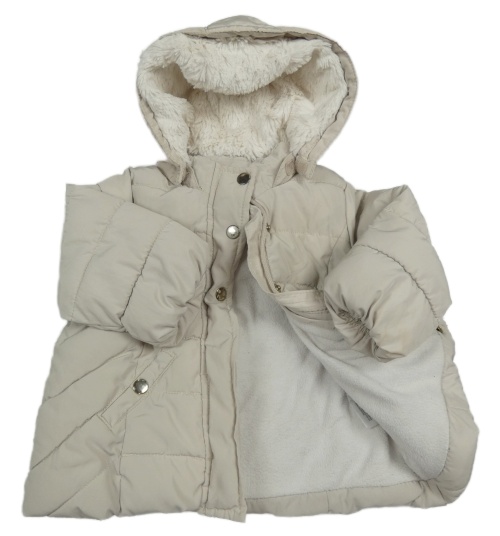 Světlebéžový prošívaný šusťákový zimní kabát s odepínací kapucí H&M