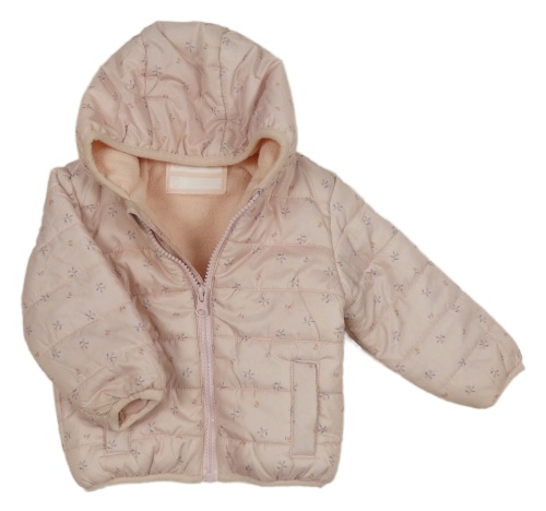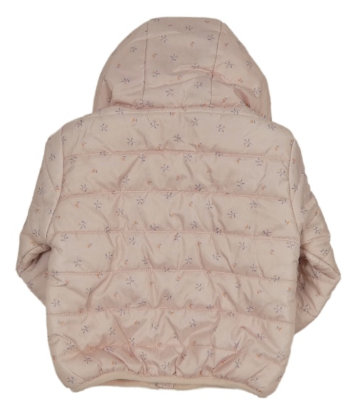 Světlerůžová vzorovaná šusťáková prošívaná zateplená bunda s kapucí