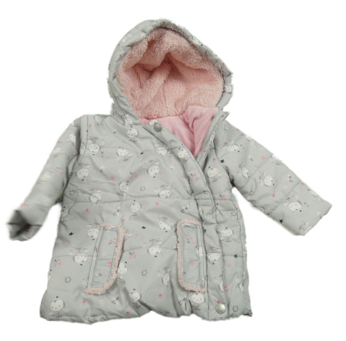 Šedá šusťáková zimní bunda s tučňáky a kapucí Topomini