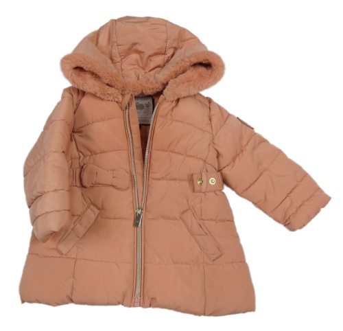 Světlerůžová šusťáková prošívaná zateplená bunda s páskem a kapucí