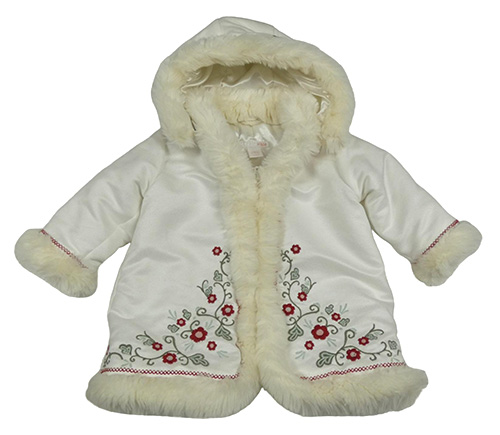 Bílá zateplená bunda s výšivkami květů a kapucí H&M