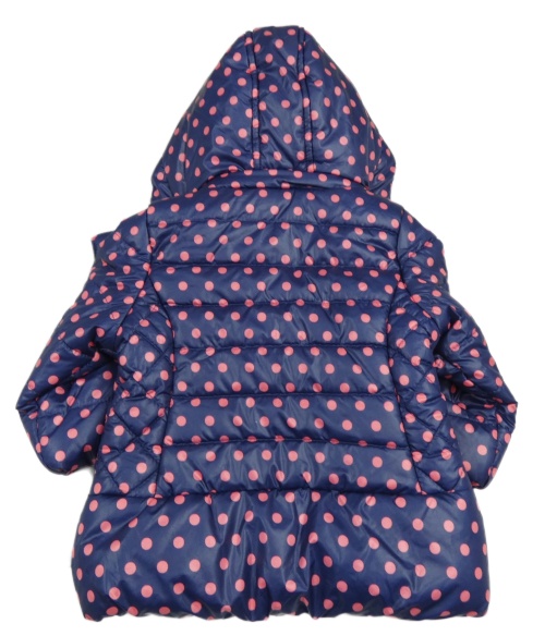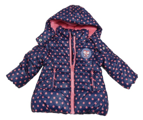 Tmavomodrá šusťáková prošívaná zimní bunda s puntíky a odepínací kapucí Liegelind