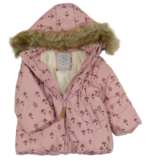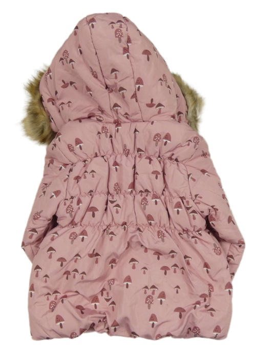 Růžová šusťáková zimní bunda s houbičkami a kapucí s kožešinou