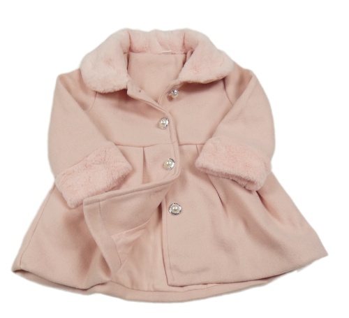 Růžový flaušový podšitý kabátek s kožešinovými prvky
