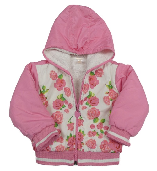 Světlerůžovo-bílá květovaná šusťáková zateplená bunda s kapucí