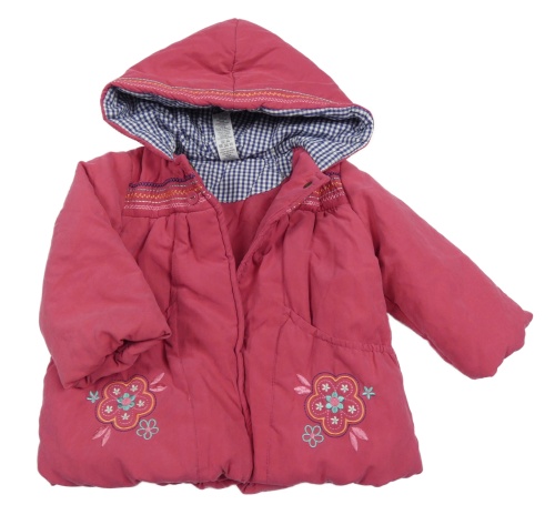 Rubínová šusťáková zimní bunda s kytičkami a kapucí M&Co.