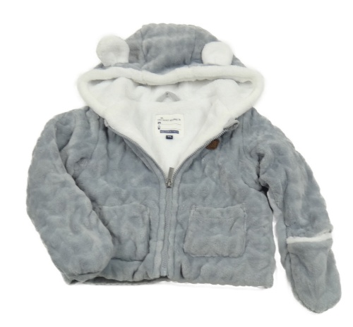 • Šedý vzorovaný plyšový zateplený kabátek s medvídkem a kapucí s oušky C&A