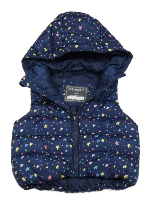 Tmavomodrá šusťáková zateplená vesta s hvězdami, srdíčky a kapucí Primark