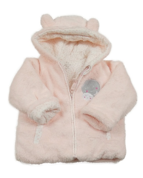 Světlerůžová kožešinová zateplená bunda s obrázkem a kapucí Early Days
