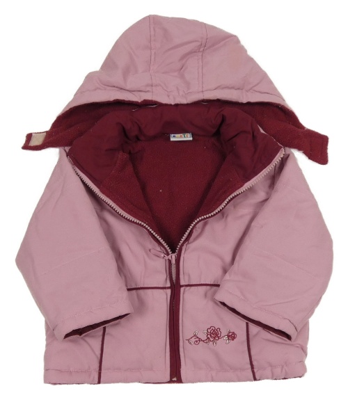 Starorůžová prošívaná šusťáková zimní bunda s růžemi a odepínací kapucí BeRTi
