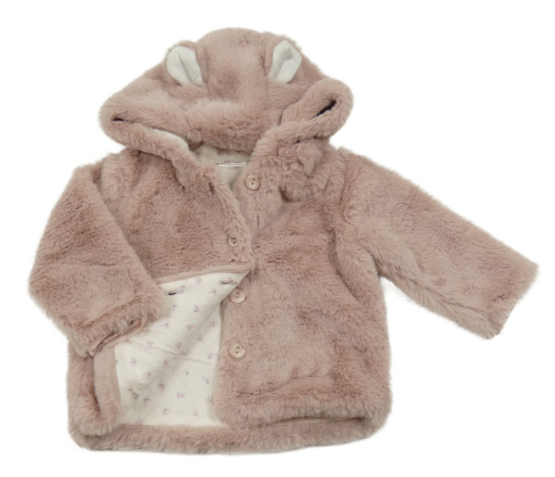 Starorůžový kožešinový podšitý kabát s kapucí s oušky Next