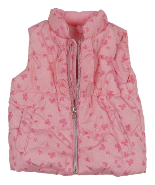 Růžová šusťáková zateplená vesta s motýlky Topomini