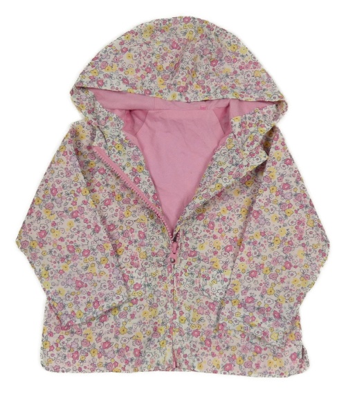 Světlerůžová květovaná šusťáková jarní bunda s kapucí