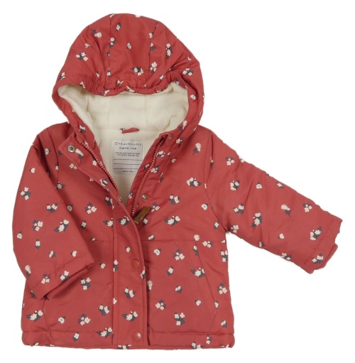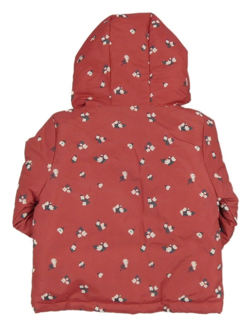Rezavá šusťáková zimní bunda s kytičkami a kapucí PRIMARK
