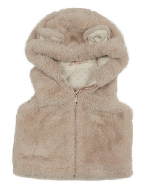 Světlerůžová kožešinová podšitá vesta s kapucí s oušky Matalan