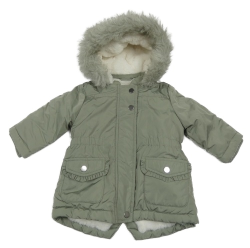 Khaki šusťáková zimní parka s kapucí s kožešinou Next