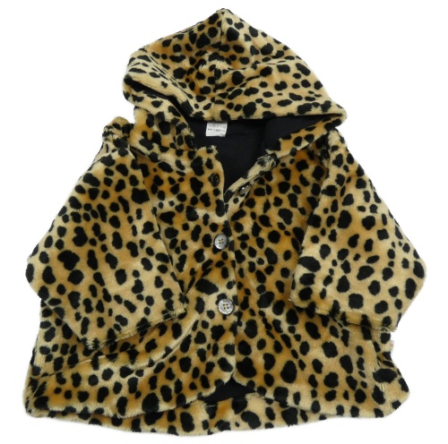 Hnědo-černý vzorovaný plyšový podšitý kabátek s kapucí