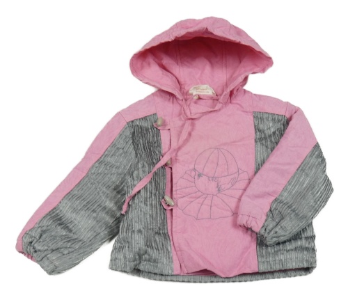 Růžovo-šedá jarní bunda s výšivkou a kapucí