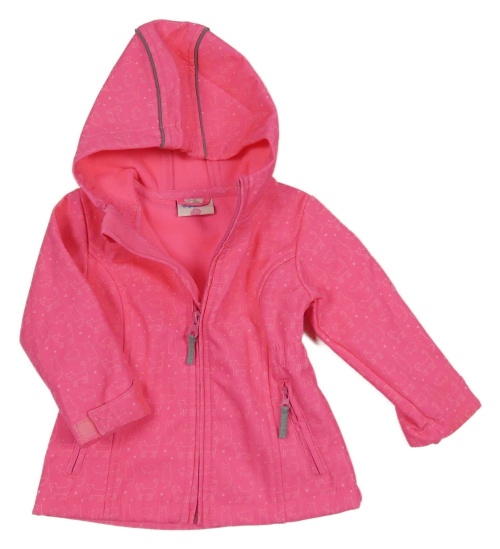 Křiklavě růžová softshellová parka s kočičkami a kapucí Topomini
