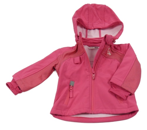 Fuchsiová softshellová bunda s nápisem a kapucí Ergee